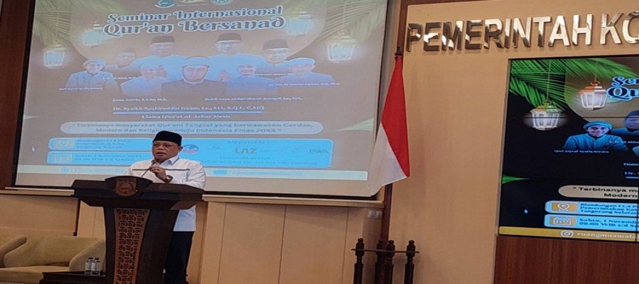 Demikian mengemuka kala dirinya memberikan sambutan pada Seminar Internasional Al-Quran Bersanad yang digelar oleh Yayasan Ruang Muamalat Global di Puspemkot Tangsel pada hari ini Sabtu pagi 1 November 2025.