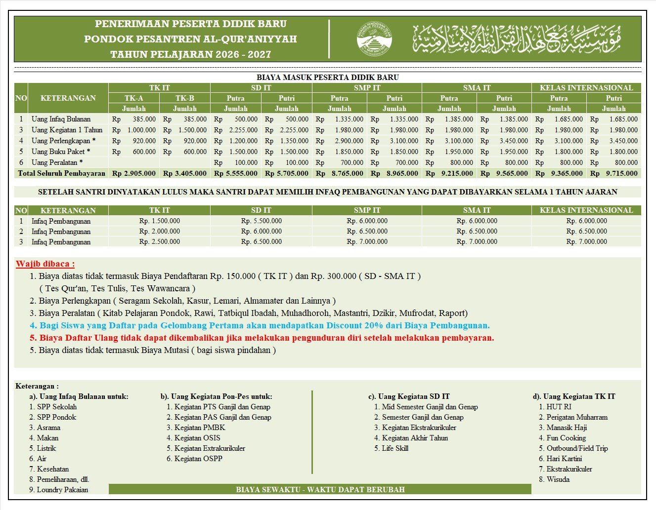 INFO PENDAFTARAN PPBD AL-QUR'ANIYYAH 2025/2026 (TK IT, SD IT, SMP IT & SMA IT)